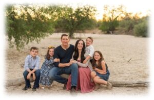 Matthew, an Arizona native, has been a firefighter in Tucson since 2001. Lauren, originally from Florida, moved to Texas for Baylor University before settling in Tucson, where she met Matthew at church. They married in 2014 and have four children: Liam, Madelyn, Finley, and Oliver.