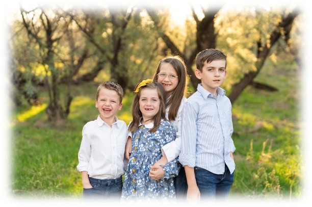 The two youngest siblings have also settled in well at Pusch Ridge Christian. Finley, who is energetic and fearless, is wrapping up her first-grade year. She excels academically, with a particular passion for science and space, aspiring to become an astronaut—she even dressed up as one for Halloween and as Neil Armstrong for her school’s literary day. Oliver, the youngest, was thrilled to start kindergarten alongside his siblings this year. Motivated and prepared, he practiced for kindergarten with Finley and was ready to jump right in from day one. He enjoys reading books and collecting rocks, often filling his pockets with stones to bring home.